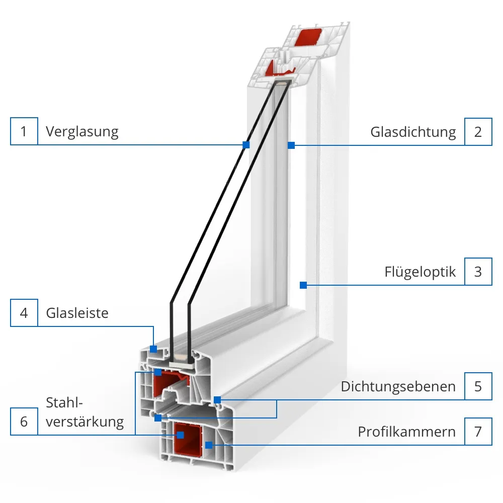 Nowadays, heat insulation and energy efficiency are the most important criteria for modern vinyl windows. The IDEAL 7000 profile complies with all legal requirements of the German Energy Saving Ordinance (EnEV) and generates a long-term reduction on heating costs.