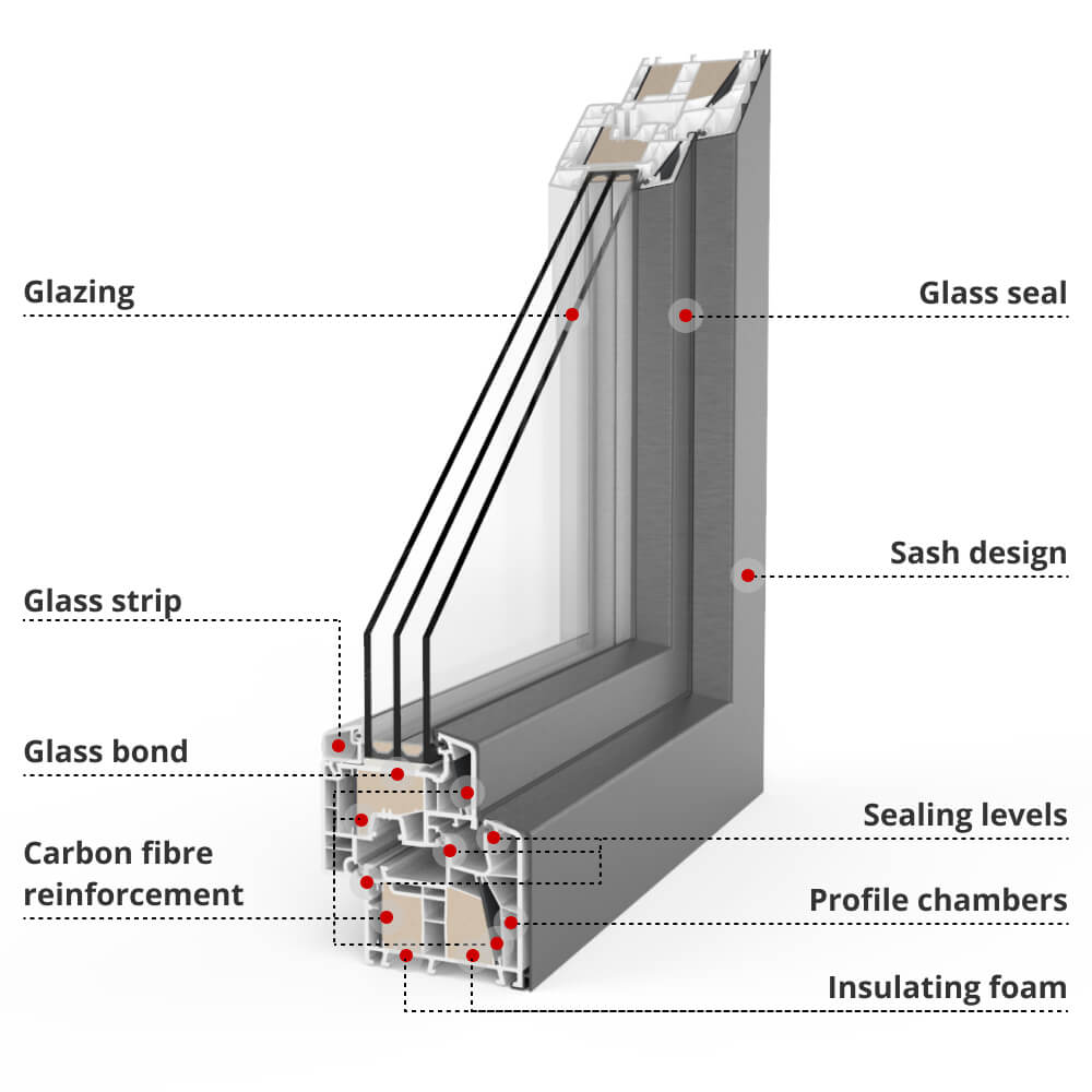 The TwinSet Energeto 8000ED takes the strength and aesthetics of aluminium clad uPVC models and combines it with the superior energy efficiency of the Energeto series. The result is a sharp looking modern window with excellent security and weather resistance that can achieve a passive house certified thermal performance while being affordable. The special sealing system and polyurethane foam filled chambers minimise heat-loss while preventing water from entering the home.